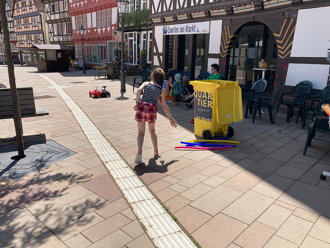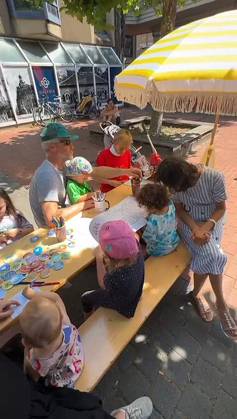 Das Projekt setzt langfristige Impulse für eine familienfreundliche Innenstadt mit einem temporären Kinder-Stadtbüro, Entdeckungstouren, Kinderprojekten, Markt und langer Tafel.