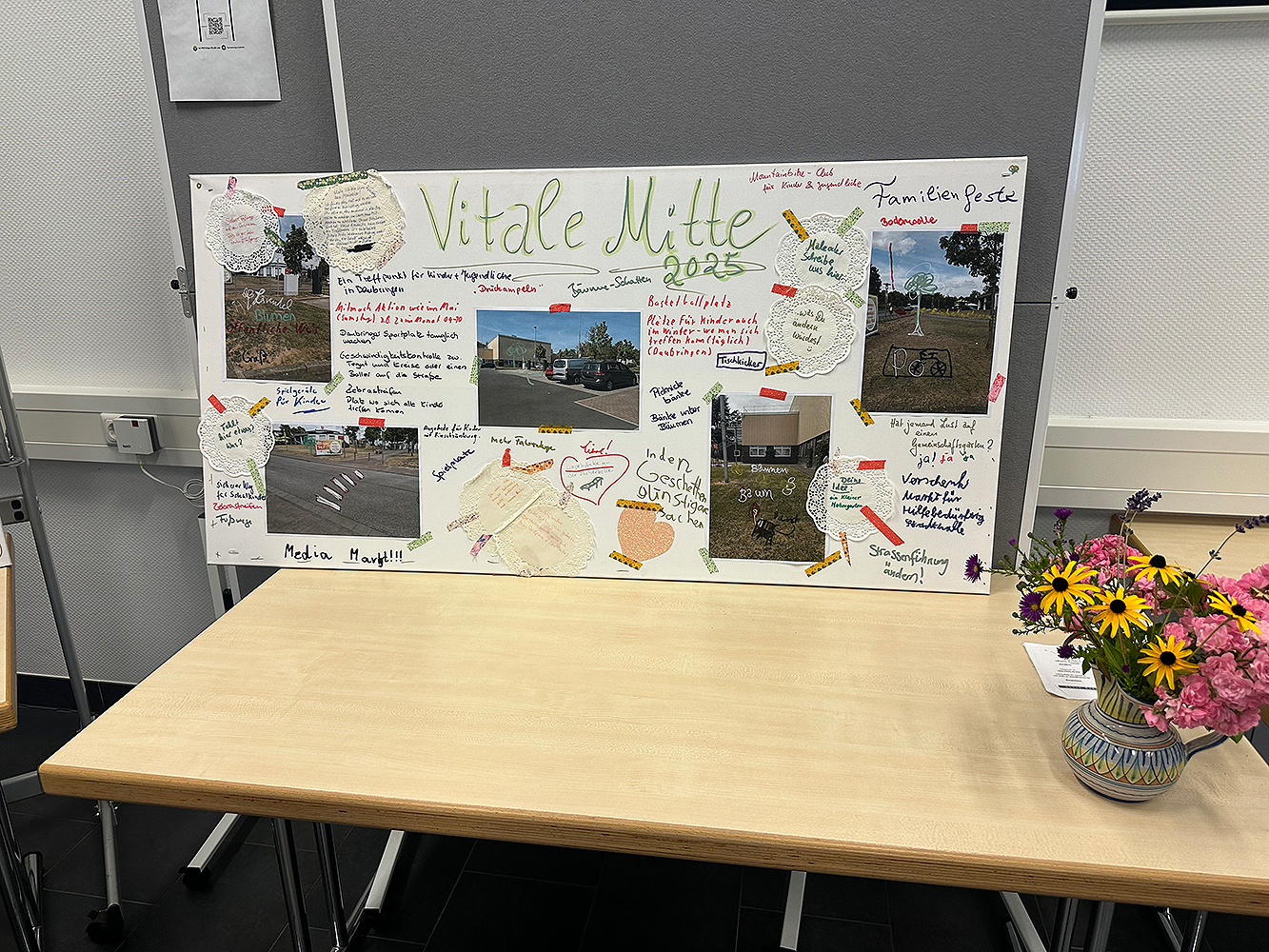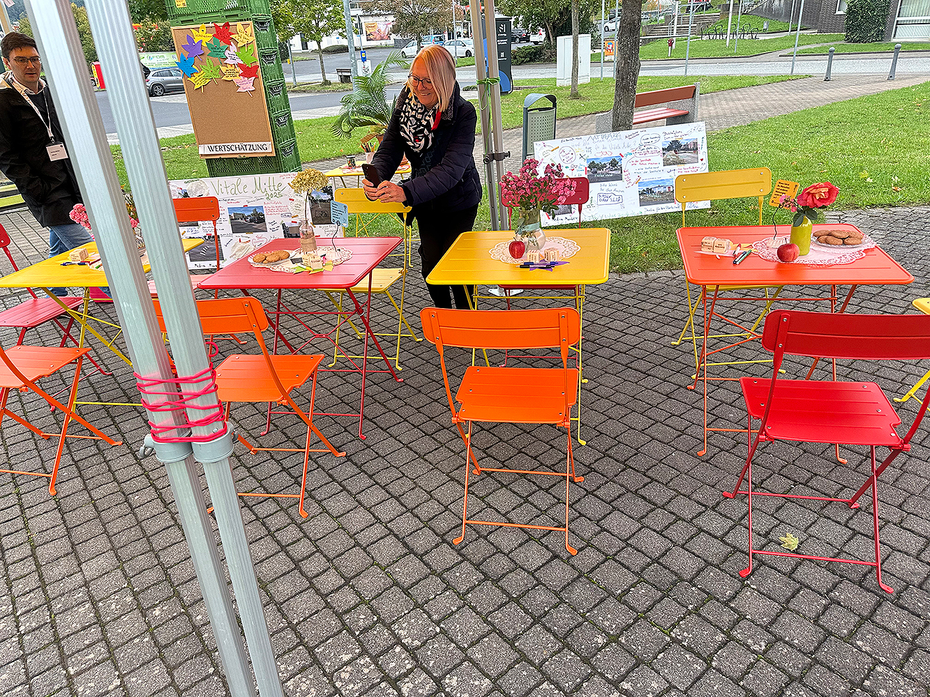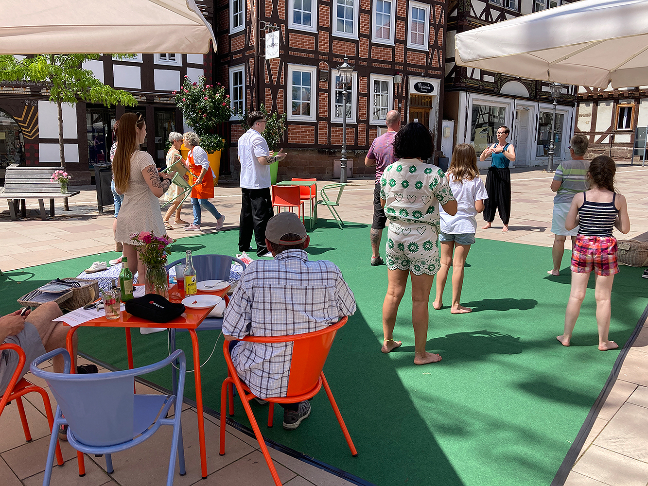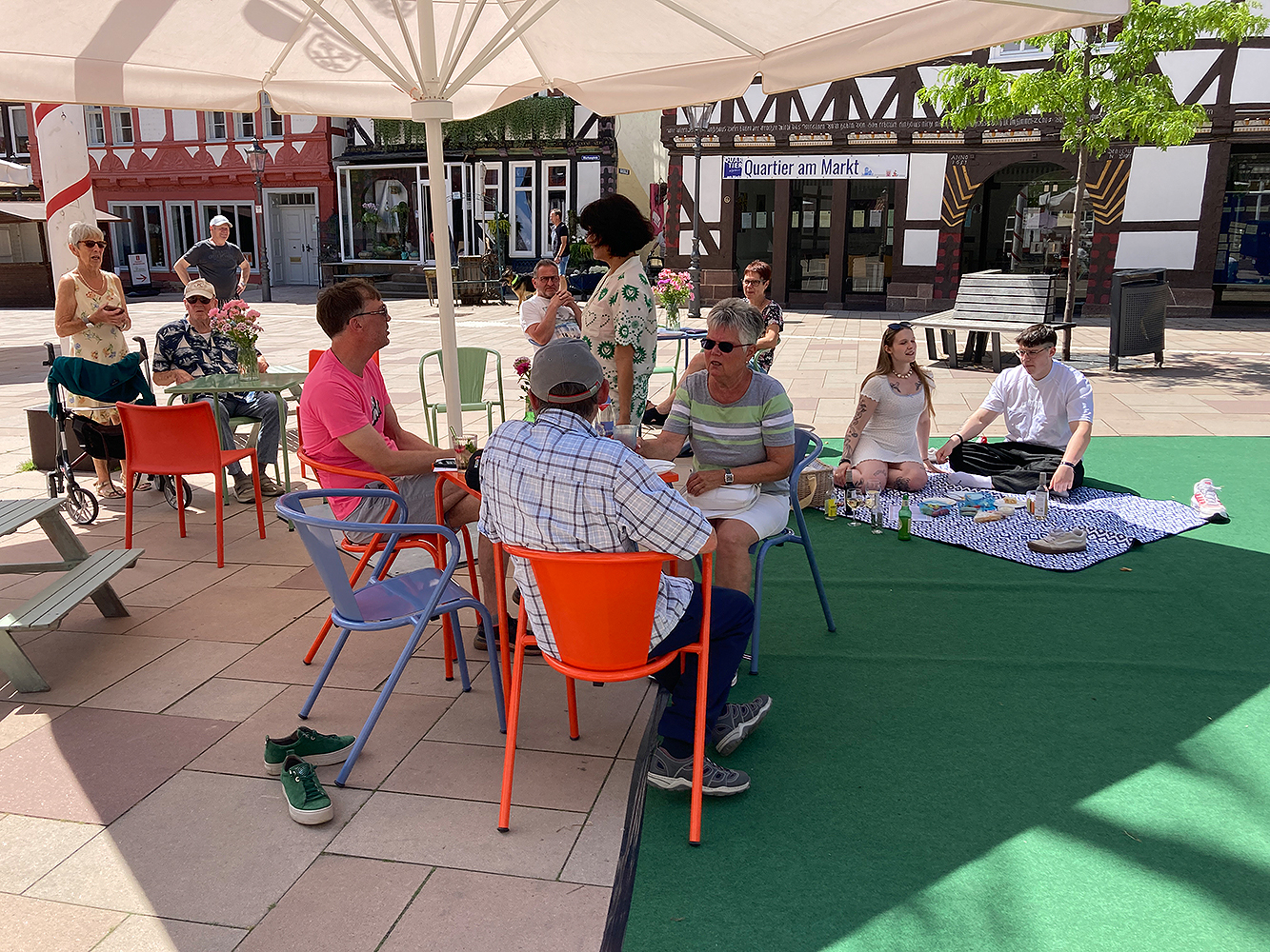 Lokale Vereine gestalten im Sommer 2025 vielfältige Mitmachaktionen auf dem Marktplatz, gefolgt von einem Abschlussfest. Stadtmöbel mit Begrünung schaffen neue Aufenthaltsqualität. Bürgerideen für die Innenstadt werden gesammelt.