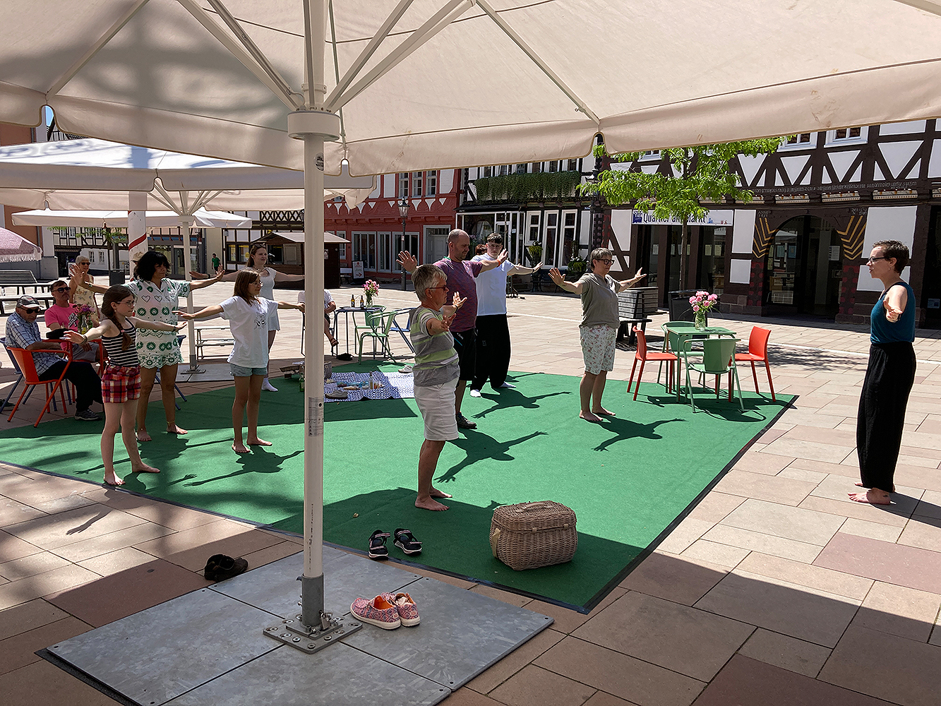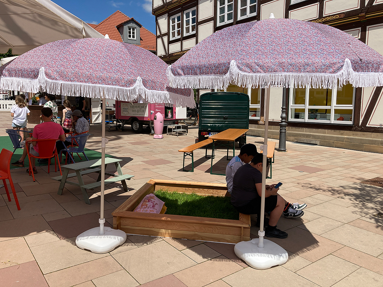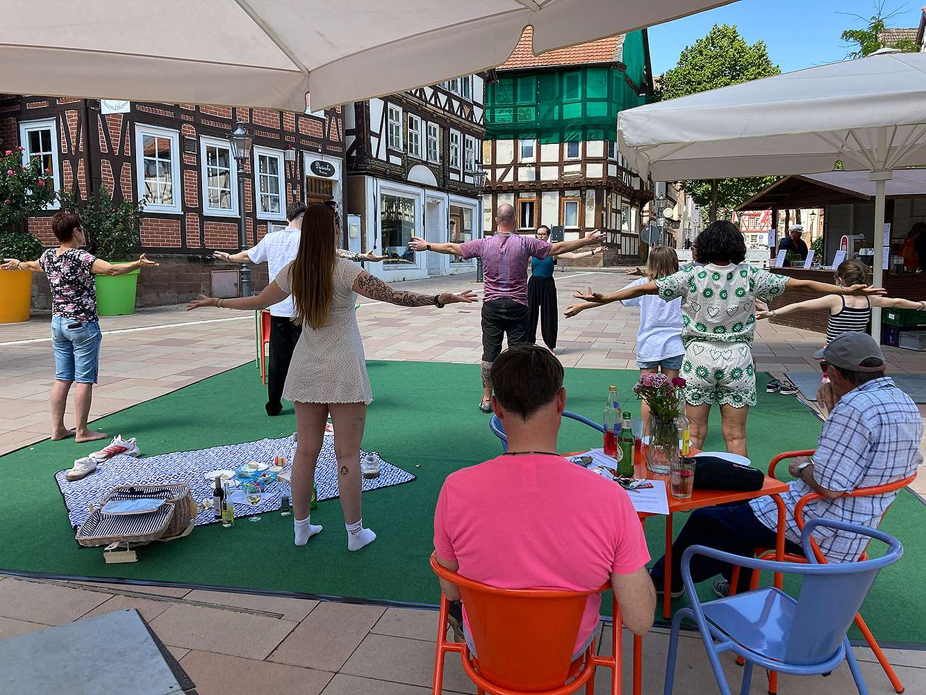 Lokale Vereine gestalten im Sommer 2025 vielfältige Mitmachaktionen auf dem Marktplatz, gefolgt von einem Abschlussfest. Stadtmöbel mit Begrünung schaffen neue Aufenthaltsqualität. Bürgerideen für die Innenstadt werden gesammelt.