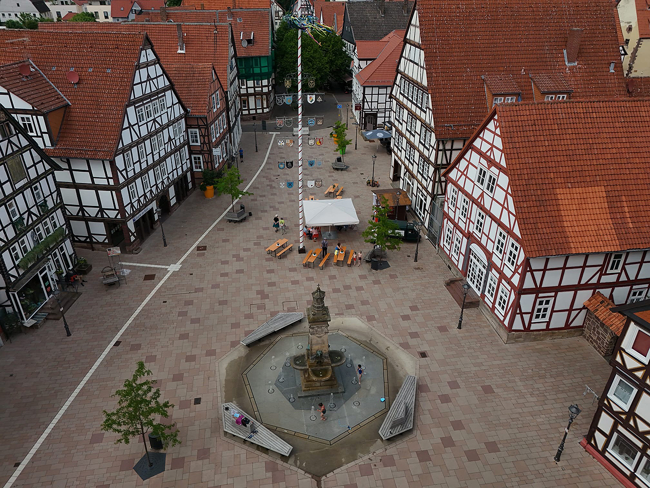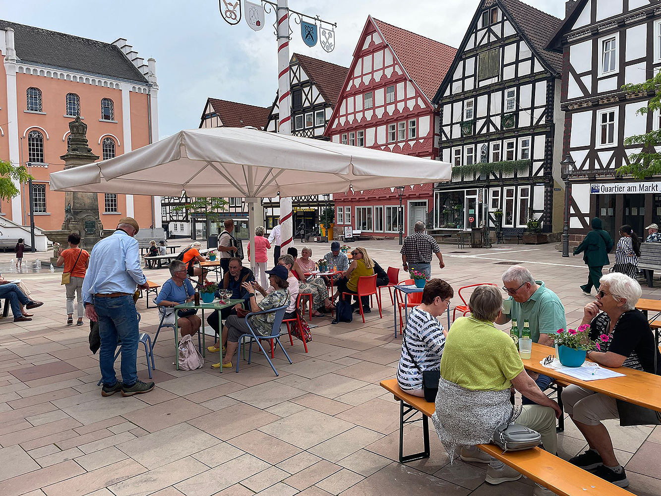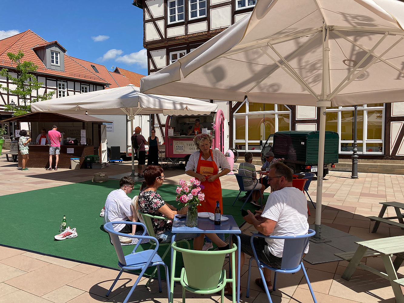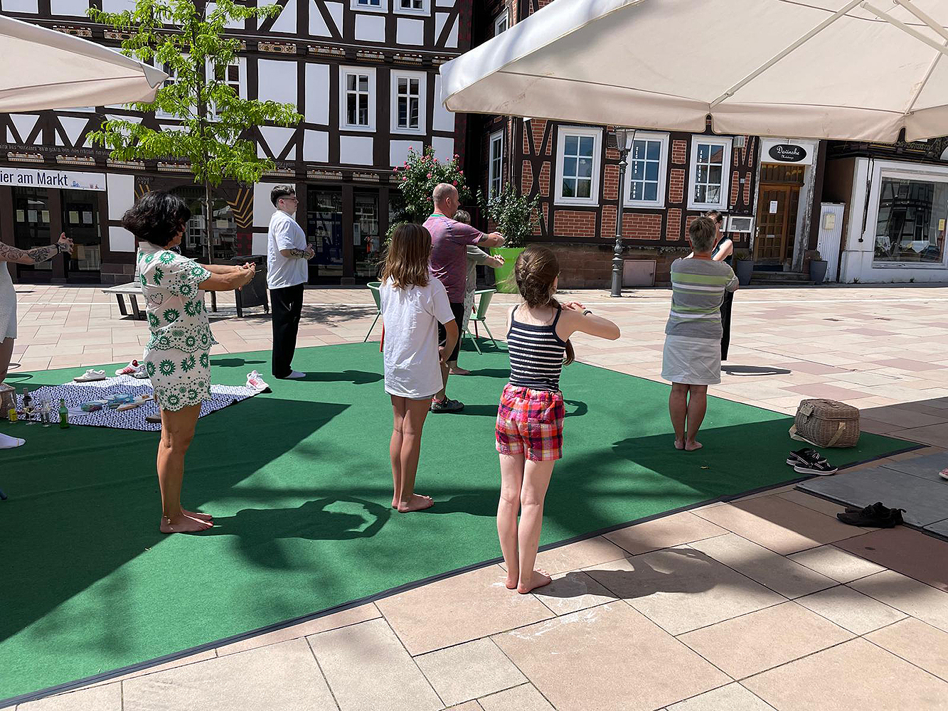 Lokale Vereine gestalten im Sommer 2025 vielfältige Mitmachaktionen auf dem Marktplatz, gefolgt von einem Abschlussfest. Stadtmöbel mit Begrünung schaffen neue Aufenthaltsqualität. Bürgerideen für die Innenstadt werden gesammelt.