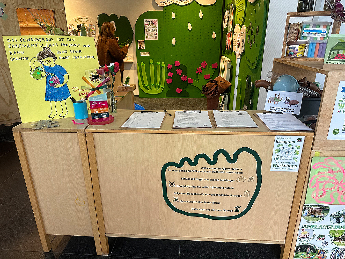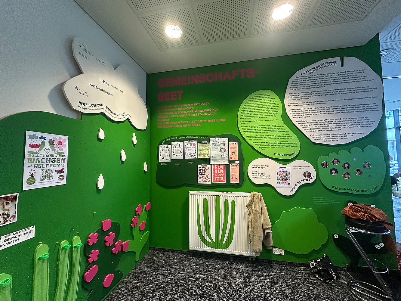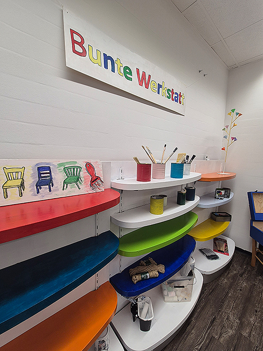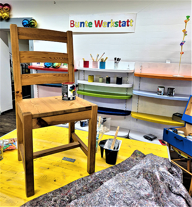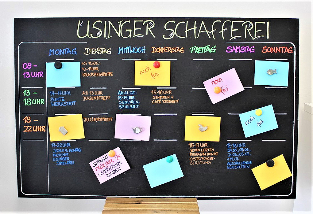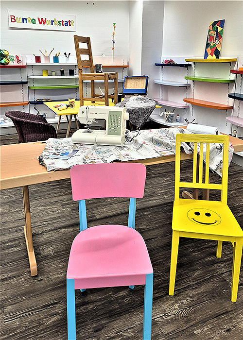 Eine große Ladenfläche wird als Sozialraum und Kreativwerkstatt genutzt. Die Initiative „Bunte Stühle für Usingen“ baut Sitzmöbel, es gibt eine Kunstgalerie, Workshops und soziale Angebote. Regionale Unternehmerinnen beteiligen sich mit Pop-Up-Stores.