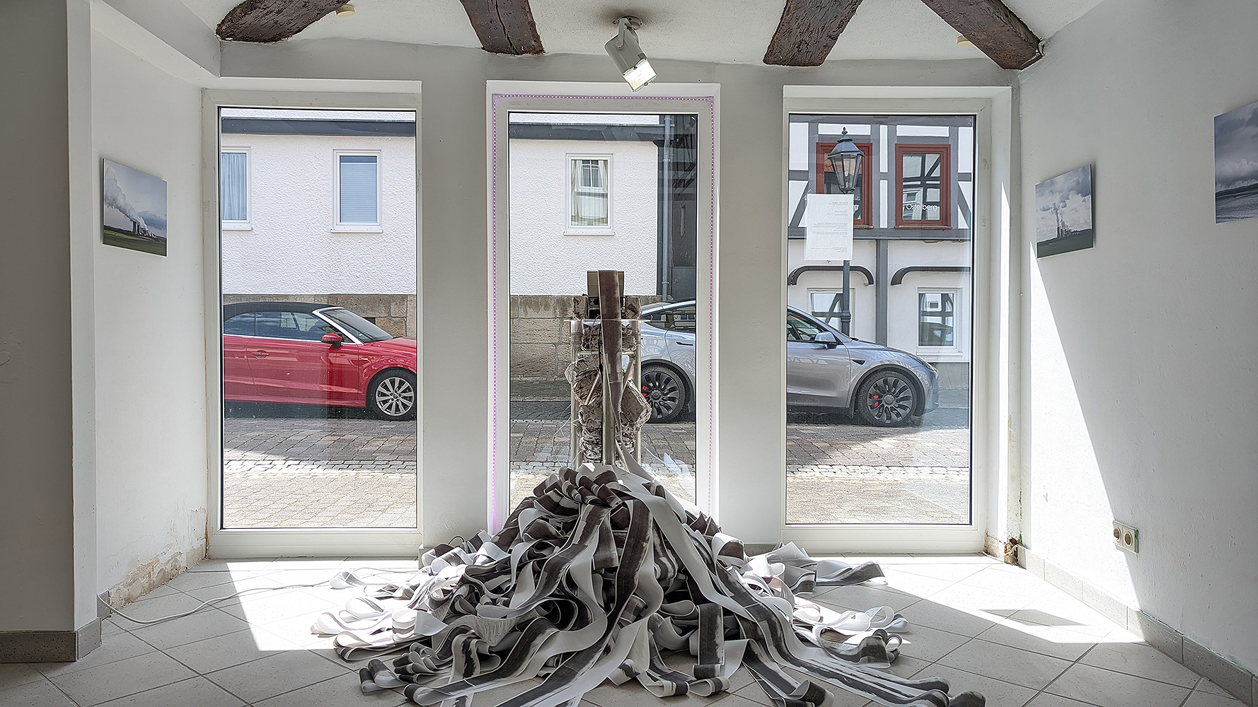 Über 16 Wochen zieht ein rotes Stoffband als „Hauptschlagader“ durch Bebras Hauptstraße und verbindet Geschäfte, Gastronomie, Parkplätze und öffentliche Plätze – und macht so die Vielfalt der Innenstadt sichtbar.